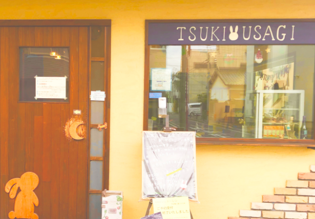 黄色い壁に加えて月とうさぎをモチーフにした扉になっており、外からもお店の温かい雰囲気を感じることができます。